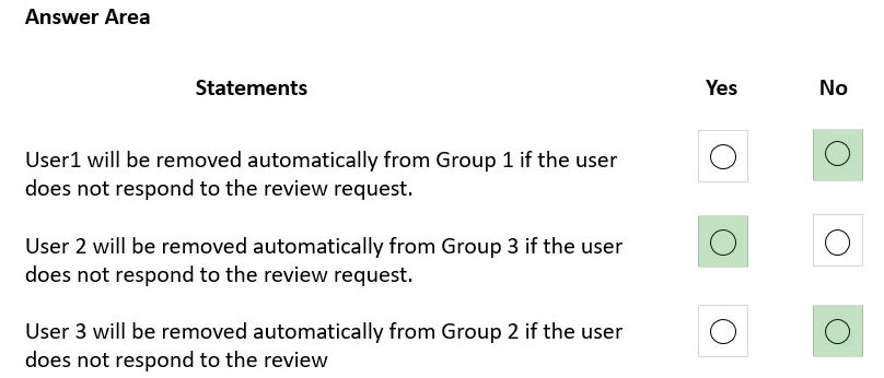 But the question says User 2 will be automatically removed from Group 3. User 2 is a member of Group 2 which is in the Active directory but Group 3 is directory synced and does not have User2 as a member, I feel the answer should NO here as well