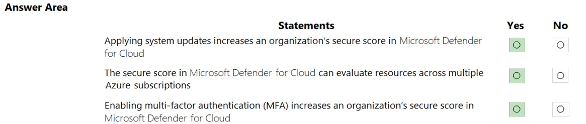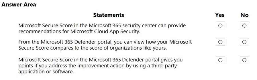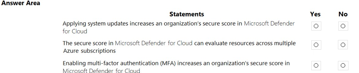 For each of the following statements, select Yes if the statement is true. Otherwise, select No.