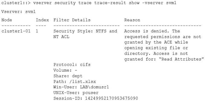 You perform a security trace when troubleshooting a data access problem for a user. The results are