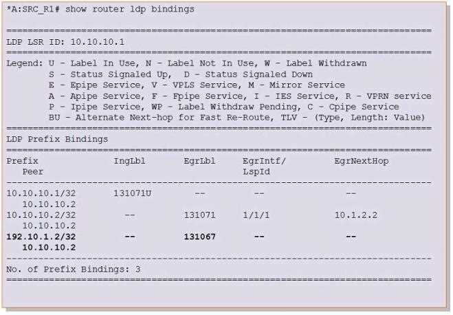 Click on the exhibit. What is the possible reason that the label for prefix 192.10.1.2/32 is not active?