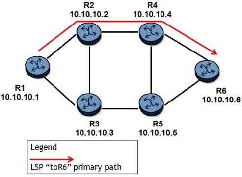 A. Enable fast-reroute on all routers along the path. R1, R2, R4, and R6.