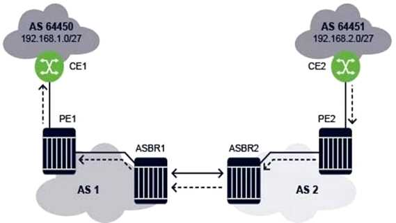 Which of the following statements about Inter-AS model В VPRN is TRUE?