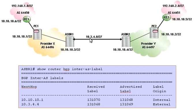 For the Inter-AS model В VPRN, which of the following statements about the inter-as-label output on ASBR1 is TRUE?
