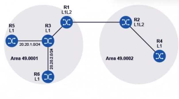 Router R4 is in Area 49.0001 and R6 is in Area 49.0002. Both routers are Level 2 (L2), meaning that