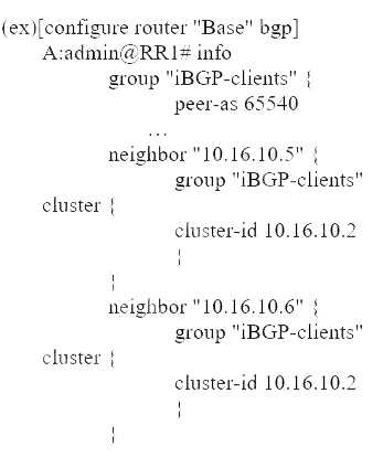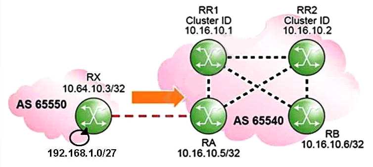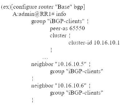 Given the network shown, which of the following is the correct BGP configuration for RR1?