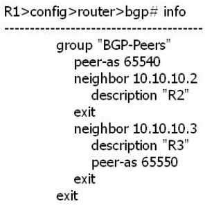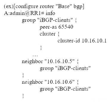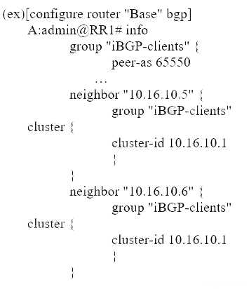 The configuration of an Nokia 7750 SR is given below. Router Rl has established BGP sessions with
