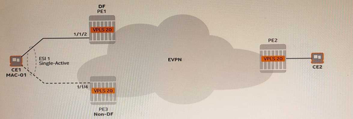 VPLS 20 is associated with a single-active Ethernet segment on routers PEI and PE3. Which of the