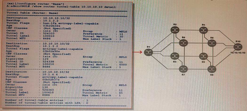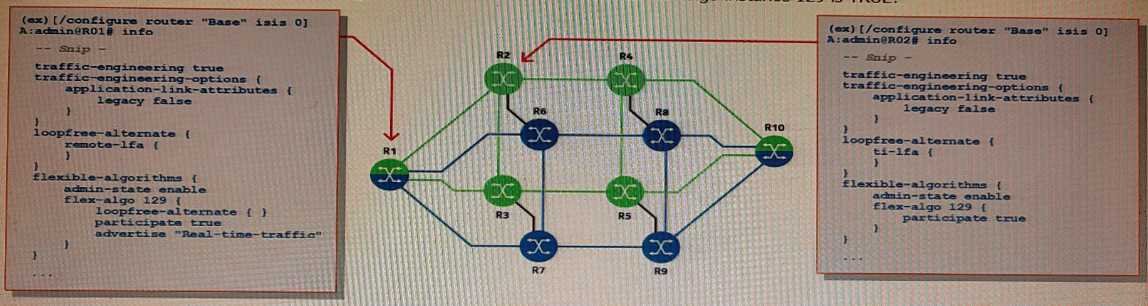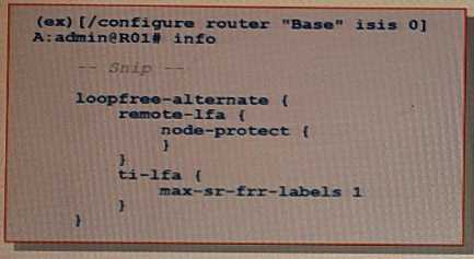 The exhibit shows that both R-LFA and TI-LFA have been enabled on router R1. R-LFA (Remote Loop-