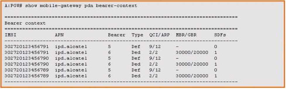 On Alcatel-Lucent 7750 SGW, which of the following CLI commands is used to obtain the output displayed in the exhibit?