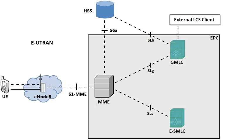 Given the exhibit, which component initiated a mobile-terminated location request (MT-LR) procedure for external LCS client?