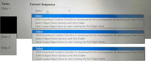 Within the Prism Central Entity > Services > Objects menu option, what is the correct task order for
