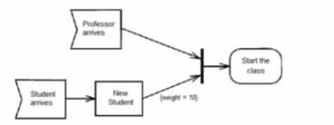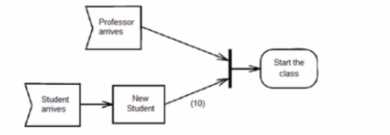 Option A: This diagram lacks the "10 Students Present?" condition and the professor's arrival, making