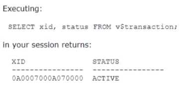 You currently have an active transaction in your session and have been granted select access to vstransaction. In which three situations will re-executing this query still return a row but with a different XID, indicating a new transaction has started?