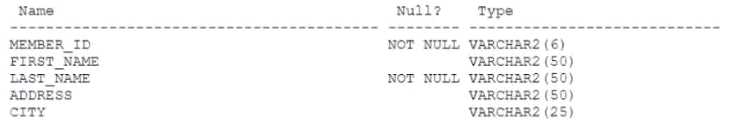 Examine the description of the members table: Examine the partial query: SELECT city, last__name 1NAME FROM members You want to display all cities that contain the string an. The cities must be returned in ascending order, with the last names further sorted in descending order. Which two clauses must you add to the query?