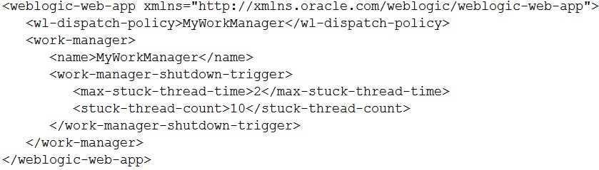 On a WebLogic Managed Server you administer, you have the following log: You investigate and find a Web Module named MyApp with the following deployment descriptor weblogic.xml: Which two are true? (Choose two.)