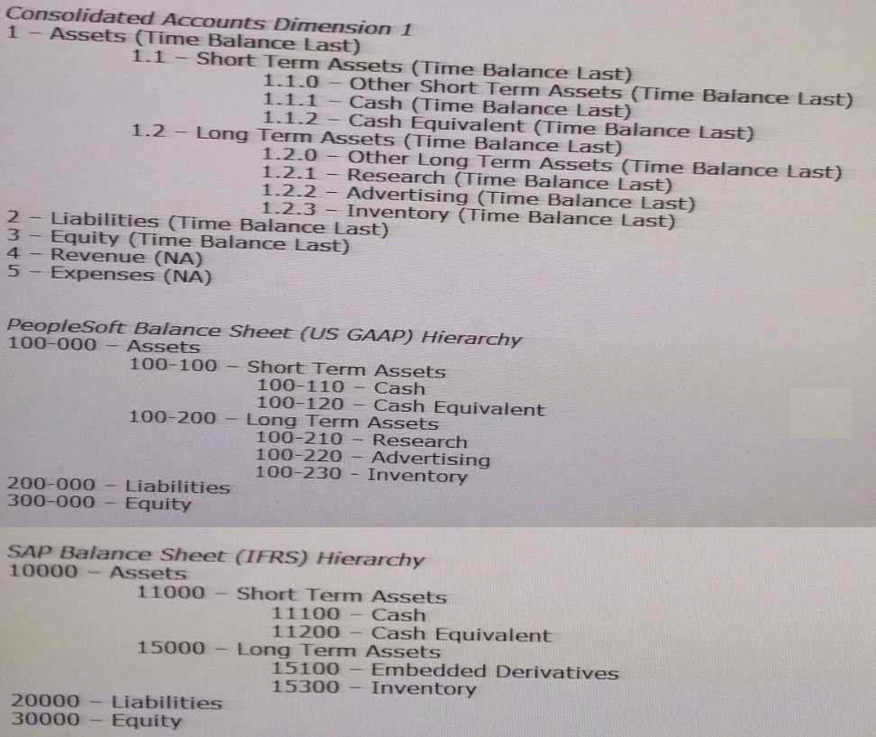 consolidated chart of accounts structure using DRM hierarchies.