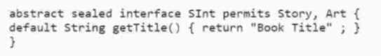 abstract sealed interface SInt permits Story, Art { default String getTitle() { return "Book Title" ;