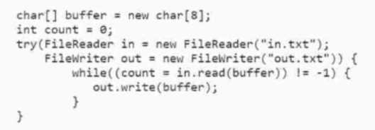 The answer is D because the code fragment reads the content of the in.txt file and writes it to the
