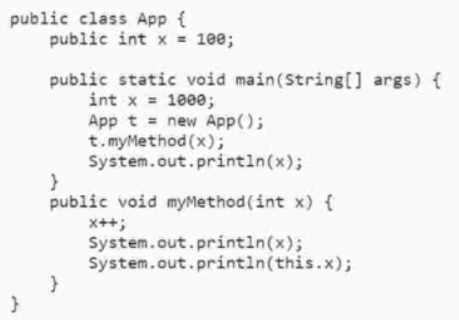 The code fragment then prints out the values of x, y, and z, which are 1001, 100, and 1000