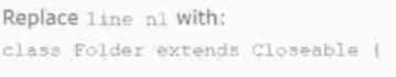 supposed to print “Open Close”, but it does not compile because of two errors.