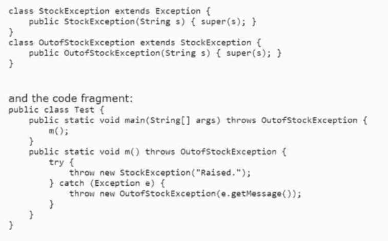 Option A is incorrect because the program does not throw a StockException, as it does not compile.