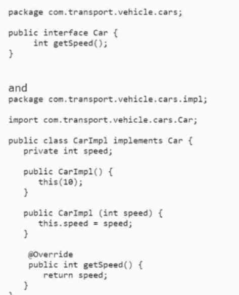 not com.transport.vehicle.cars.Car impl. It also has an unnecessary to clause, which is used to limit
