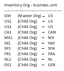 Your company is an automobile spares manufacturing organization, which follows a discrete process. It has its own manufacturing and distribution centers located globally. It has these business units: US - USA business unit CAN - Canadian business unit UK - UK business unit MX - Mexican business unit IND - India business unit SPA - Spain business unit FRA - France business unit NL - Netherlands business unit GER - Germany business unit These are the inventory organizations that exist in each business unit: Which two statements are true?