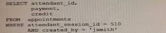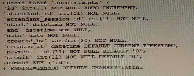 Examine the appointments table definition which contains one million rows: Now, examine this statement which executes successfully: Which statement will improve query performance?