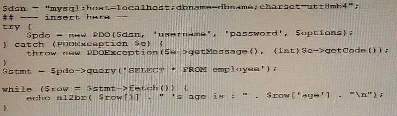 D. $options = [PDO:: ATTR__DEFAULT_FETCH MODE => PDO: :FETCH_CLASS] ;