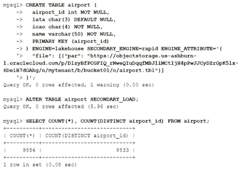 There are more than 10 concurrent users running queries on the DB system. The airport_geo table has been loaded successfully into a HeatWave cluster. You want to run this query: SELECT DISTINCT country FROM airport_geo ORDER BY country; How do you determine whether the query is offloaded to the HeatWave cluster for execution?