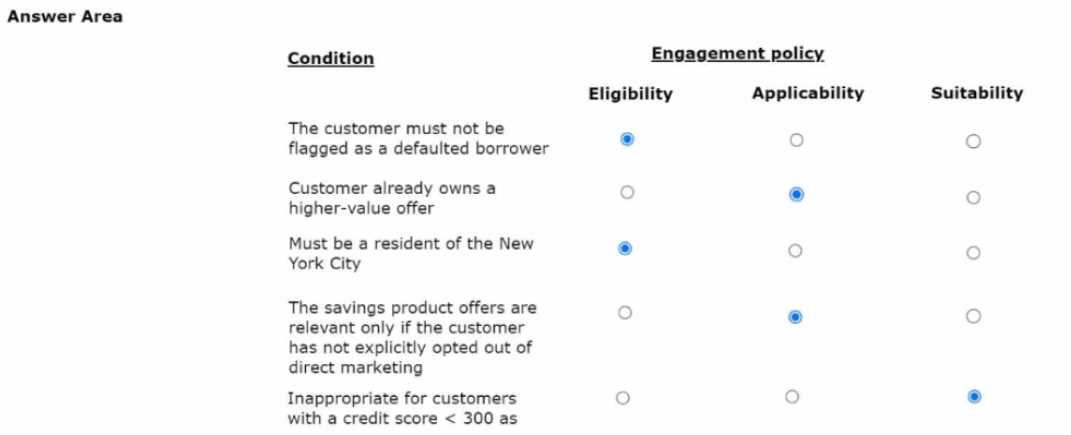 or suitable for an offer. You can use engagement policy conditions to filter customers based on their