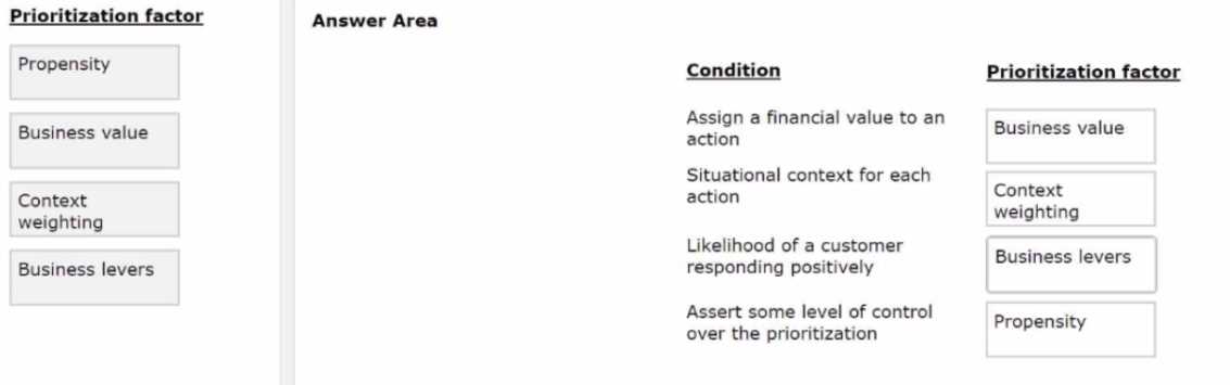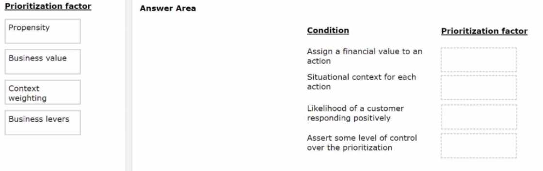 based on the business requirements. Select each prioritization factor on the left and drag it to the