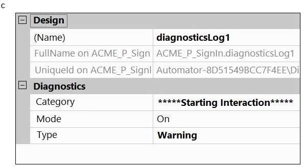 A developer adds a diagnostic log component to an automation and checks the log file.