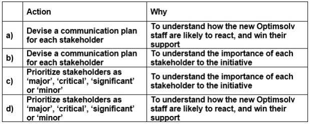 Which OCM activity will BEST help Optimsolv to overcome any staff resistance, and comply with