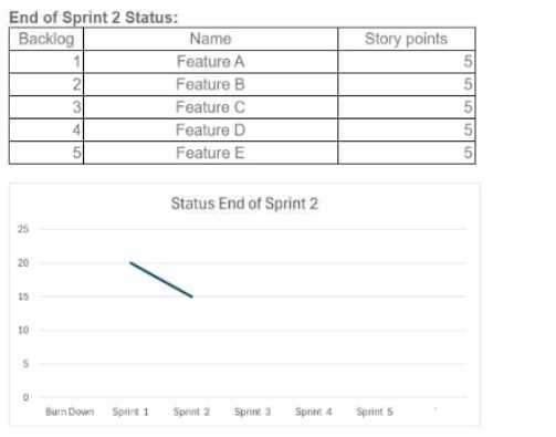 Refer to the exhibit. Case Study An agile project lead for a company is leading a sales team who has committed to delivering new product functionality to the customer at the end of five sprints. The agile project lead performed initial planning with the team and with the team's support has committed to the scope and deadline. Check in with the project in three stages to answer the associated questions. How do two additional features and more story points added by the product owner impact the team's progress and ability to complete work within the iteration, considering the burndown rate of the team has not changed? (Refer to the Case Study and End of Sprint 3 Exhibit)