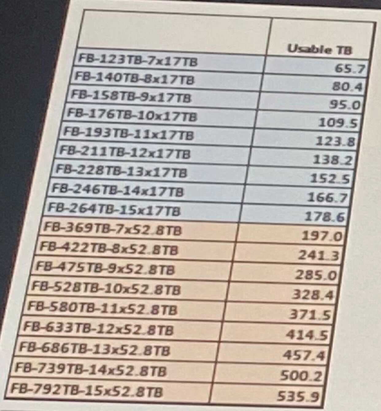 A customer has 10x52TB blades for 328TB and 10GB/s for read performance. How much space will