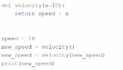 speed = 10 def velocity(): global speed speed = speed + 10 return speed