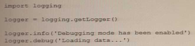 The code then uses the logger object to log two messages: one with the level logging.DEBUG and