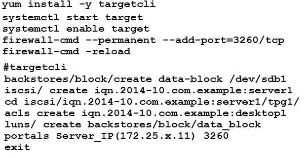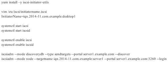 The serverX.example.com provides an iscsi port (3260). Connect the disk with