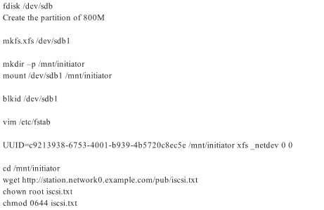 Create 800 MB partition on iSCSI block device and assign the filesystem as xfs