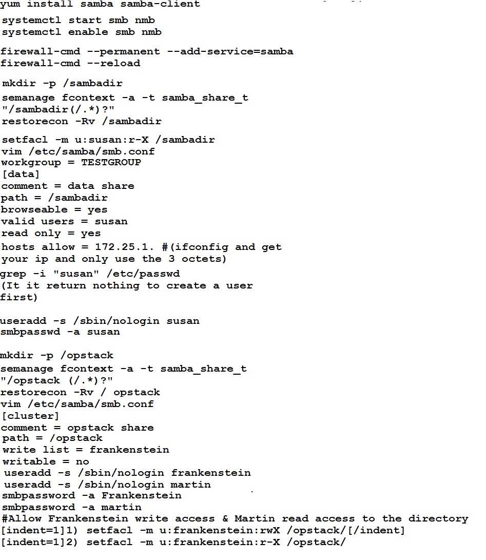 Configure the serverX to share /opstack with SMB share name must be cluster