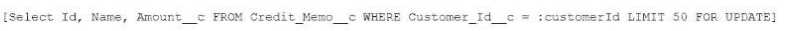 This will lock up to 50 records of Credit_Memo__c with the specified Customer_Id__c for the