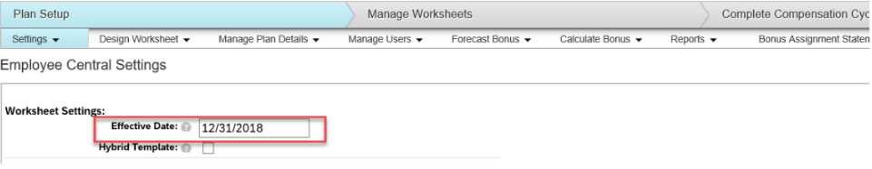 Refer to the screenshot below. When implementing an Employee Central-integrated Variable Pay template, to which of the following does the highlighted Effective Date refer?