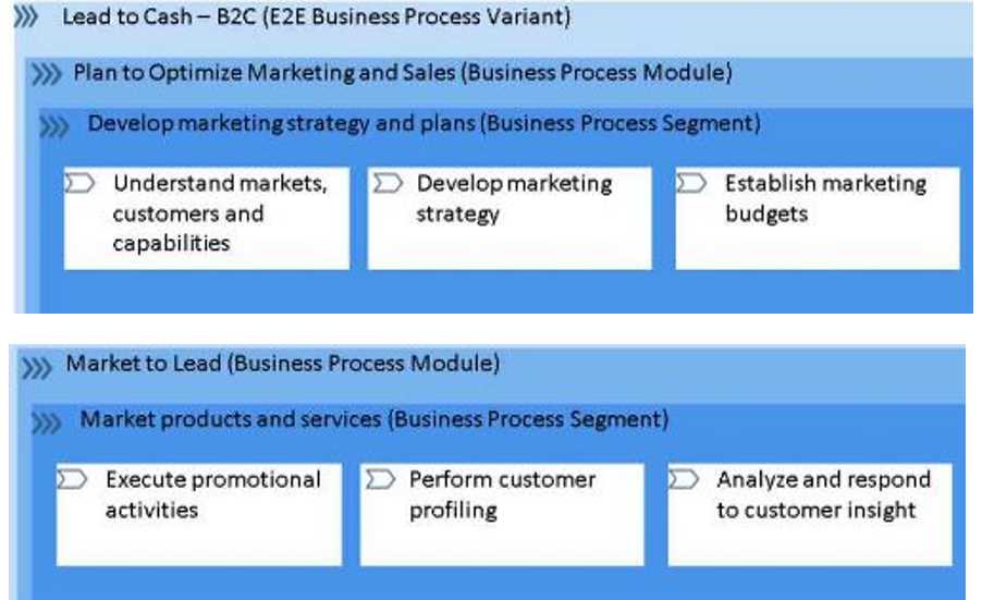goals with the Business Process Modules, Segments and Activities in the Lead to Cash B2C Business