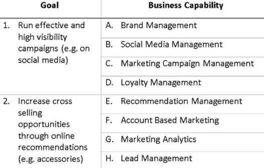 two key goals outlined by the Wanderlust CIO, what are the most appropriate Business Capabilities?