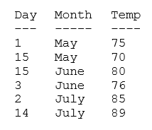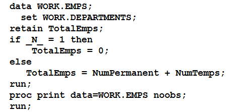 Given the SAS data set WORK.TEMPS with numeric variables Day and Temp and character variable