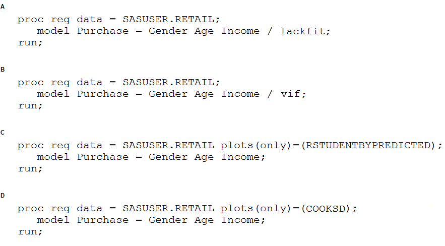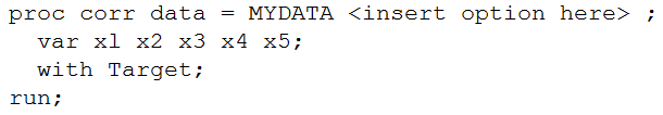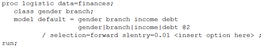 decided to use forward selection within PROC LOGISTIC. Fill in the missing code option that will