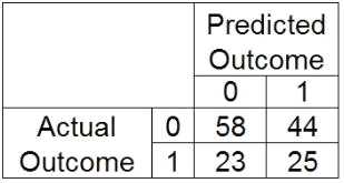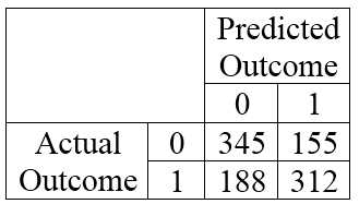 Calculate the accuracy and error rate (0 - negative outcome, 1 - positive outcome)