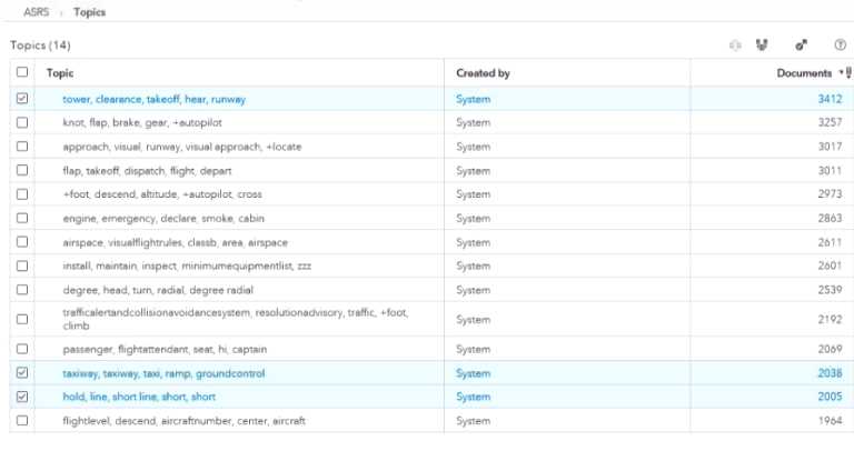 Refer to the Exhibit Tab: An analyst is trying to find Aviation Safety Reports (ASR) related to taxiway and runway incursions • She does not know the LITI language • She finds that 3 of the 14 derived topics have keywords related to incursion incidents. • She would like to examine documents that discuss incursions from the current ASR document collection Which strategy will best support the analyst's goals?