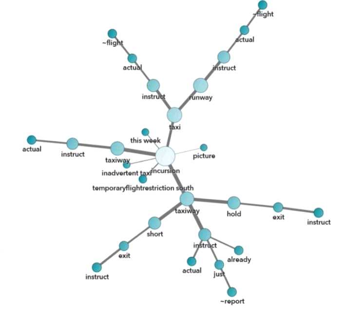 Refer to the Exhibit tabs. The Aviation Safely Reporting System document collection contains safety reports related to aviation A term map is created fortIhe term "incursion" The term "taxiway" is directly connected to the term "incursion" Which statement is consistent with the exhibit?